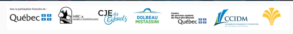 Nous remercions tous les partenaires financiers et organisateurs pour leur soutien à cet événement important pour notre communauté, soit le ministère de l’Emploi et de la Solidarité sociale (Services Québec Saguenay-Lac-Saint-Jean), la MRC de Maria-Chapdelaine, la Ville de Dolbeau-Mistassini, le Carrefour jeunesse-emploi des Bleuets, la Chambre de commerce et d’industrie de Dolbeau-Mistassini, la Chambre de commerce et d’industrie du secteur Normandin et le Centre de services scolaires du Pays-des-Bleuets.